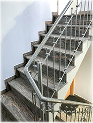 Innen- Außen- Treppen, Freitragend, auf Wangen oder Betonkern aufgelegt, gerade, halb- oder Viertel- Schwung.